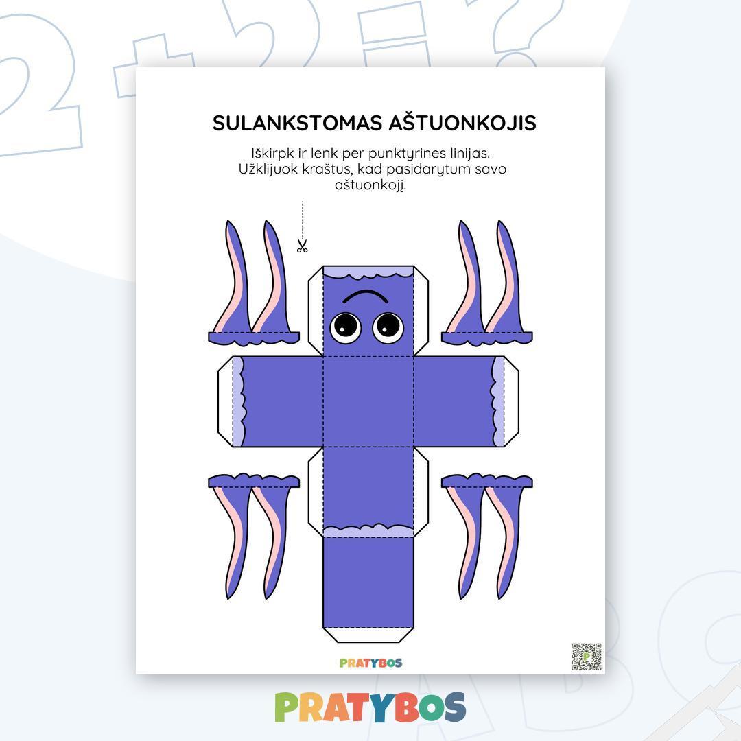 Šis lankstymo užduotis leidžia vaikams sukurti savo aštuonkojį, įtraukiant tiek kūrybiškumą, tiek rankų miklumą. 🎨🤲