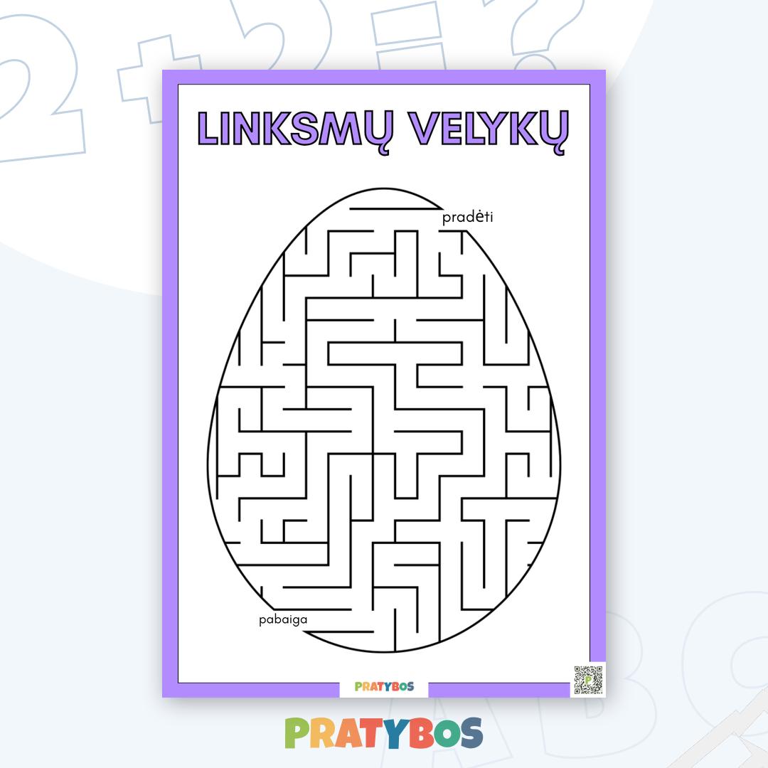 Tinka kaip greita šventinė užduotis darželyje, pradinukams ar mokymuisi namuose – galima spręsti pieštuku, flomasteriu ar net spalvinti kelią 🎨