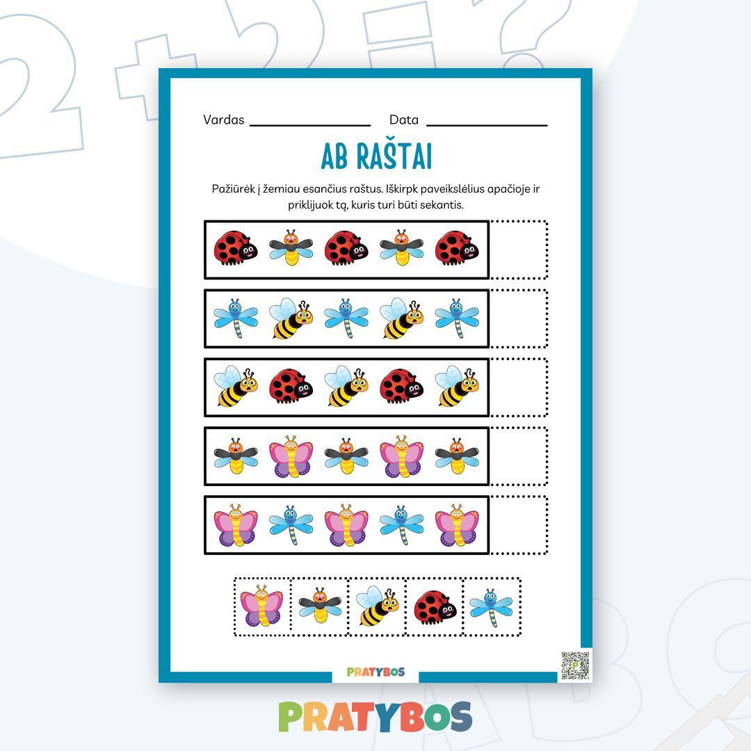 Smagus raštų užduočių sąsiuvinis vaikams. 🐞✂️