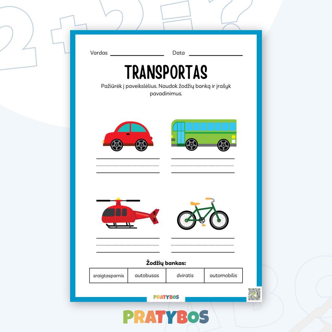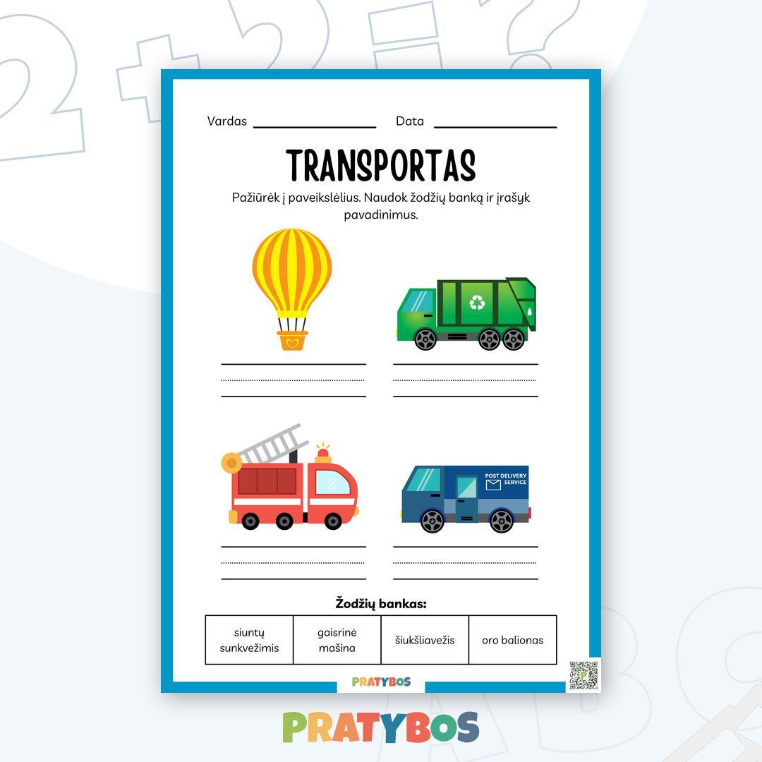 Šis užduočių sąsiuvinis padės vaikams išmokti įvairių transporto priemonių pavadinimus ir jų paskirtį. 🚜 🚢