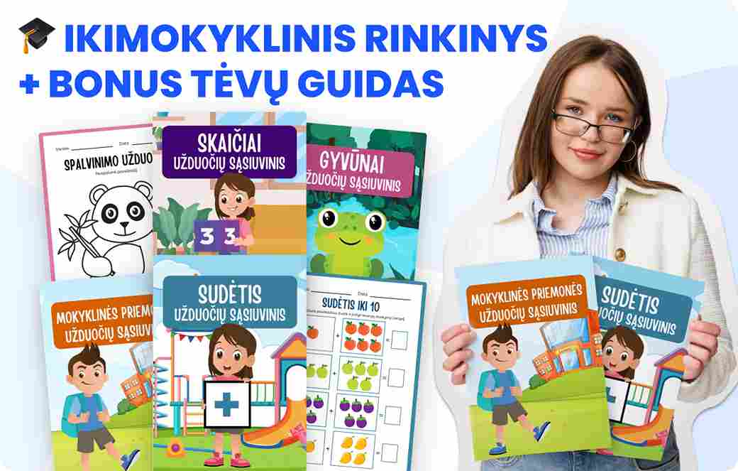 🎁 Dovanų gausite nemokamą instrukciją tėvams, kad galėtumėte iškart lengvai pradėti pasiruošimą mokyklai!